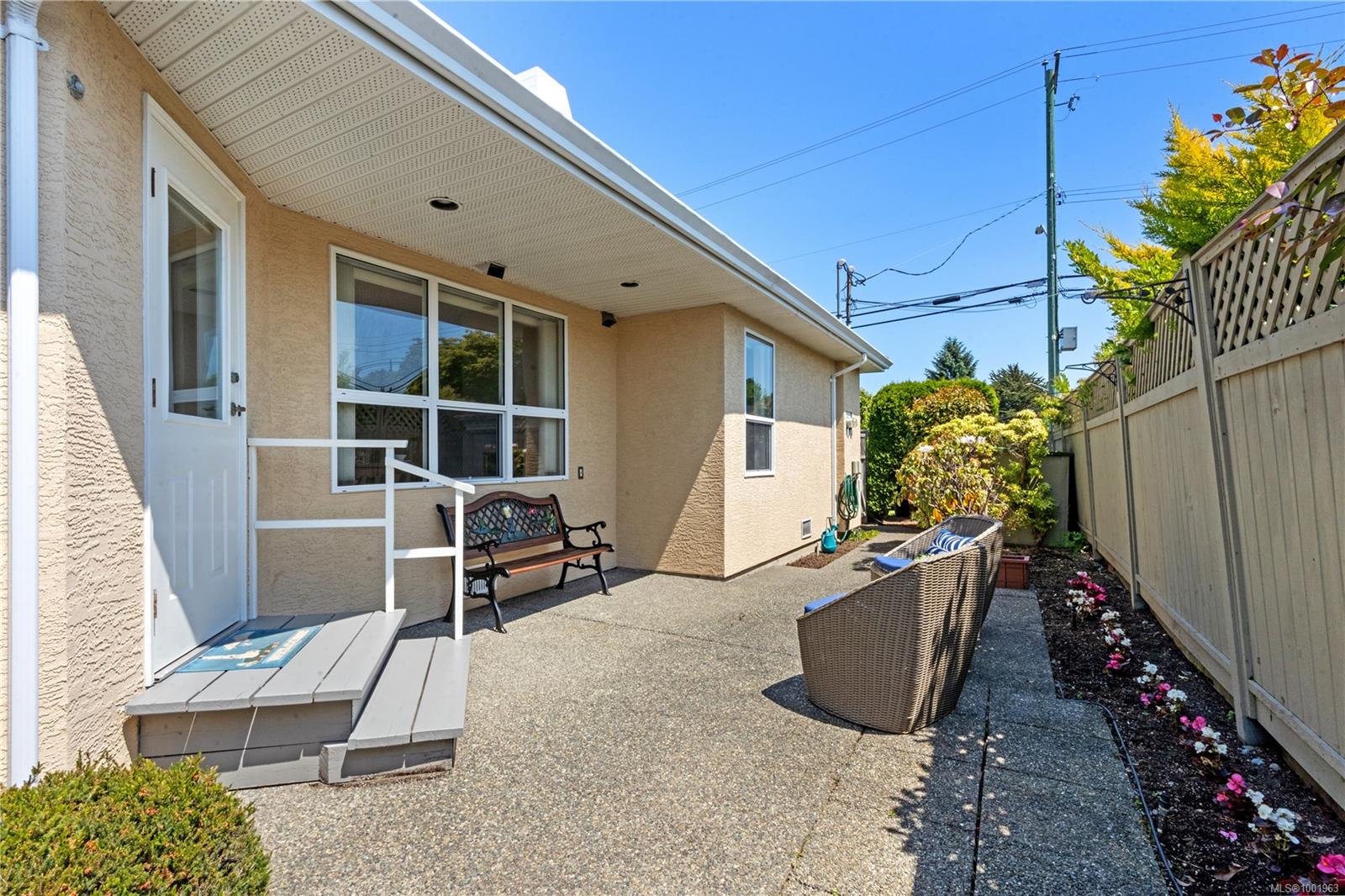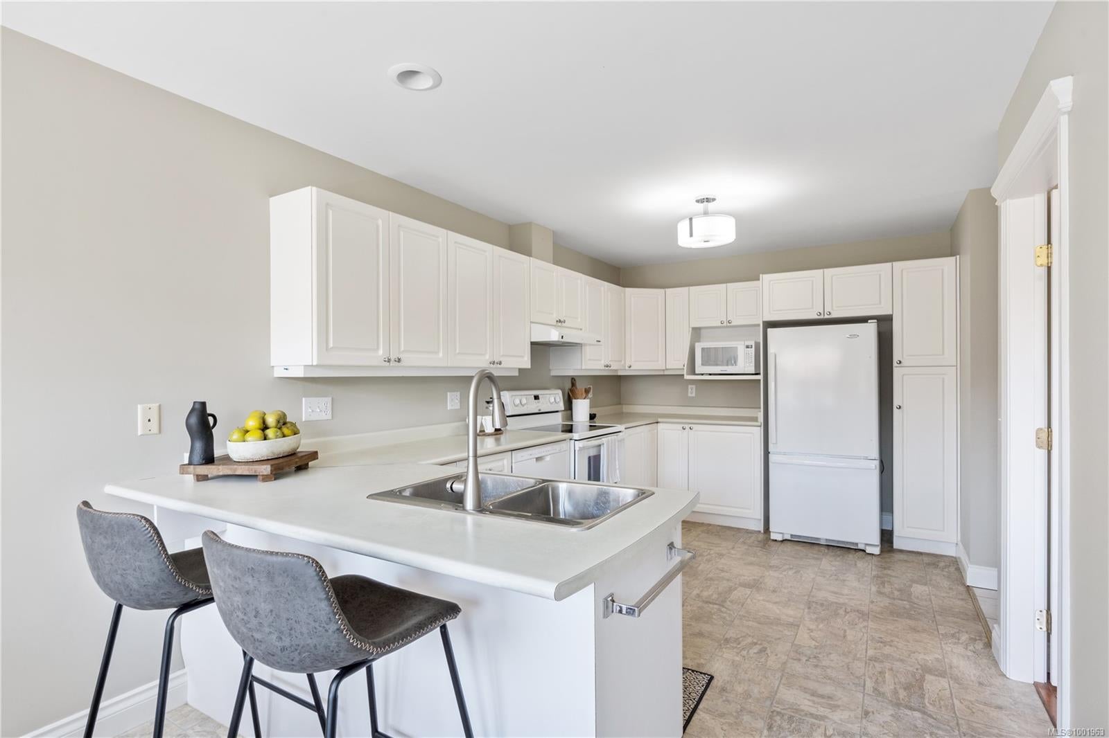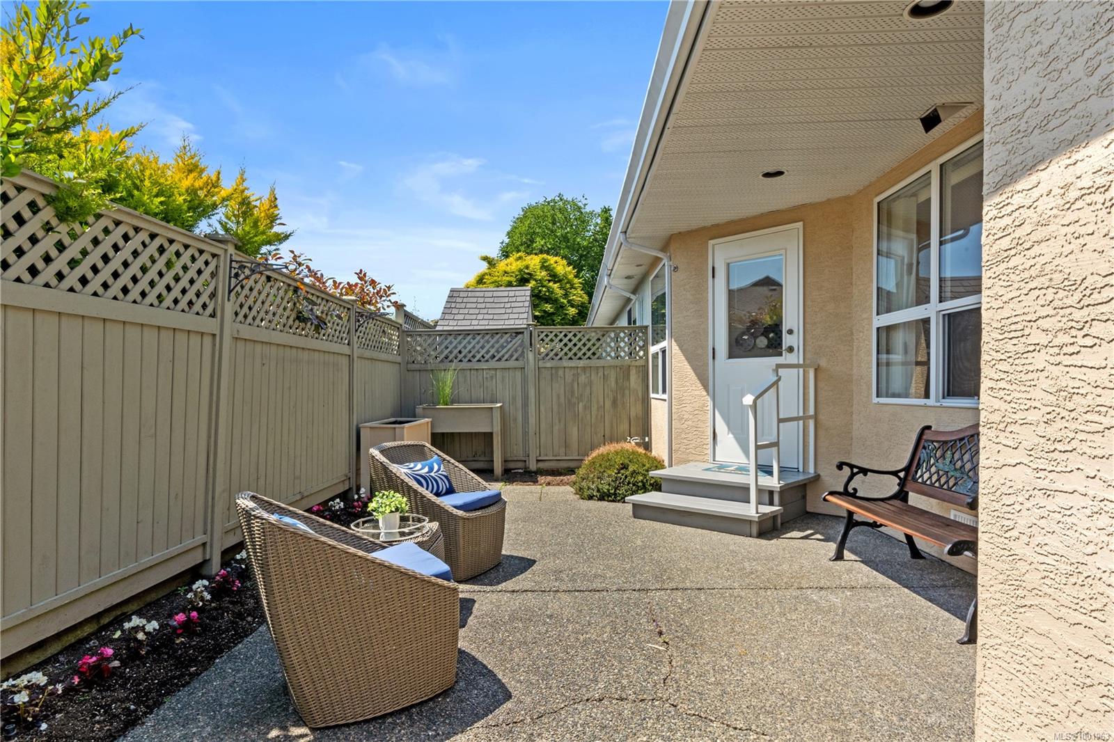 Experience the ease of one-level living in this beautifully maintained 3 bedroom, 2 full bathroom half duplex just steps from the beach and a short stroll to downtown Sidney. This bright & inviting home features hardwood floors, a cozy double-sided fireplace, large windows and skylights that let in an abundance of light. The kitchen is spacious with a breakfast nook overlooking the patio. The expansive primary suite offers a walk-in closet and full ensuite with relaxing soaker tub. Two additional bedrooms provide flexibility for guests, a home office or hobbies. Step outside to enjoy the mature landscaping, private patio & low-care yard with irrigation; a peaceful space to enjoy with minimal upkeep. The tile roof provides long-term durability and the double car garage ensures plenty of room for parking and storage. Located in one of Sidney’s most desirable areas, this home is perfect for down-sizers, retirees or anyone seeking comfort and convenience by the sea. Book your showing today!