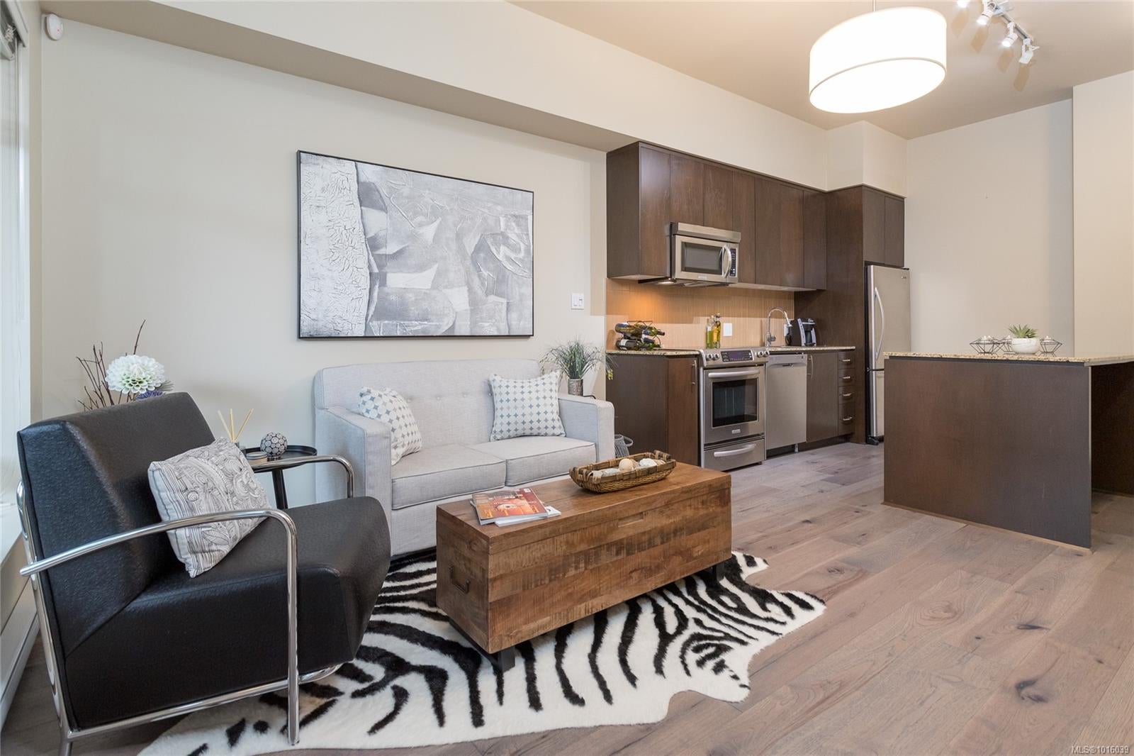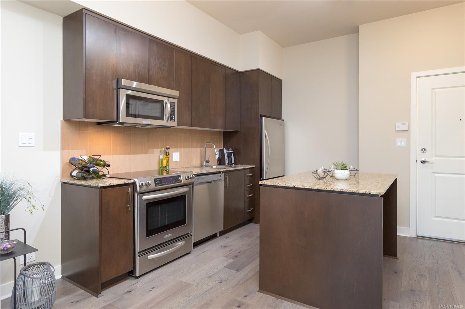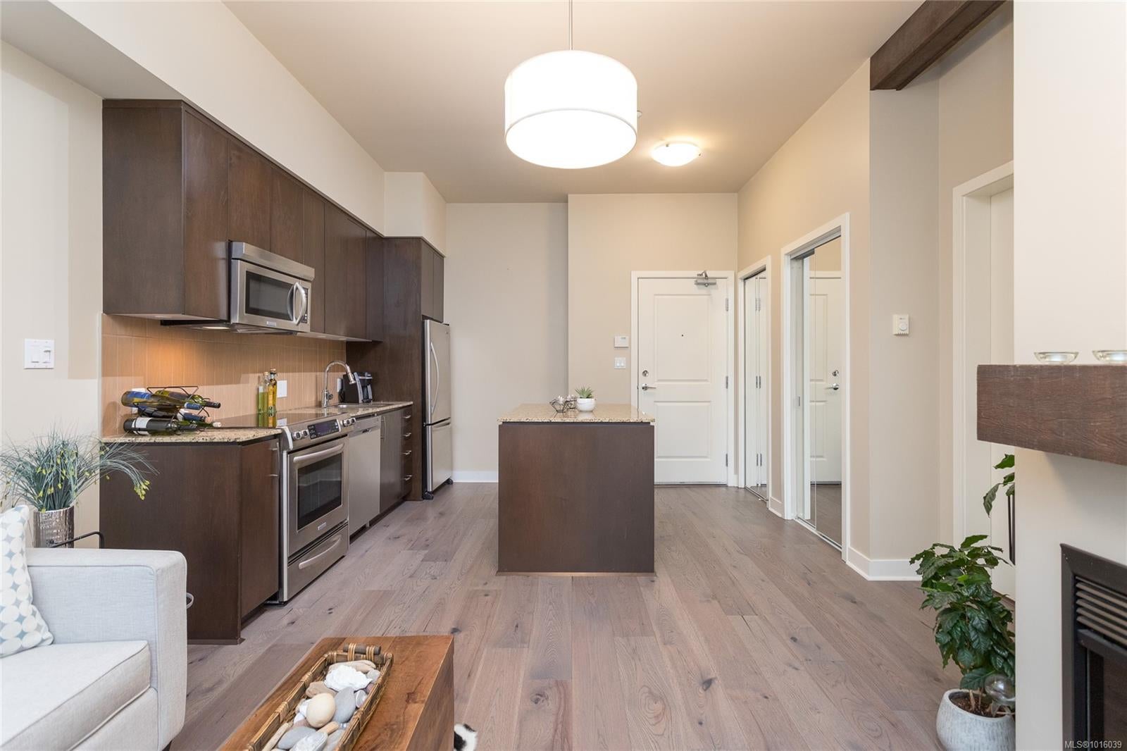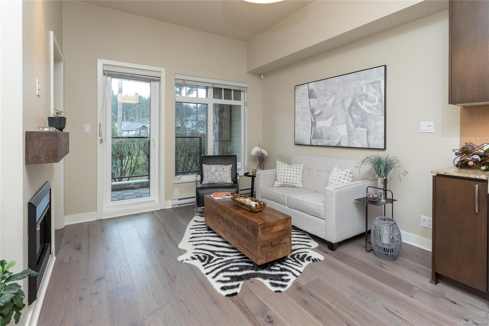 Step into resort-style living with this charming 1-bedroom condo, perfectly situated in Victoria's premier golf course community! Ideal for first-time buyers and snowbirds, this South-East facing ground-floor unit boasts serene views of the 9th Fairway and an airy ambiance accentuated by soaring 10-foot ceilings. Enjoy modern conveniences like stainless steel appliances, in-suite washer and dryer, and a cozy electric fireplace. The private covered patio, perfect for a bistro set and BBQ, complements the additional common area patios ideal for entertaining. Secure underground parking, a storage locker, and plentiful visitor parking enhance convenience. Located in a pet-friendly community, you’ll have easy access to Bear Mountain’s renowned amenities, including clay tennis courts, a fitness center with a heated outdoor pool, and two World-Class Golf Courses. Stroll to nearby dining or explore hiking trails just steps from your door. Don’t miss this opportunity—schedule your showing today!