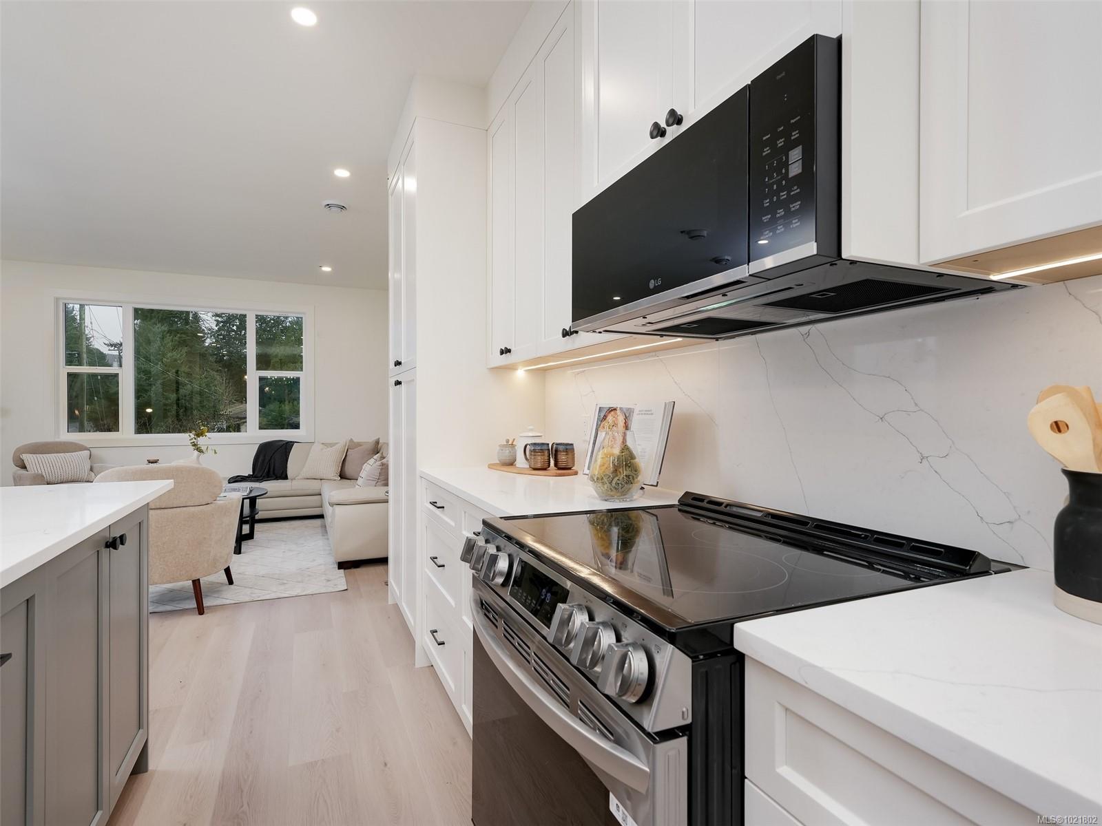 Glen Isle Townhomes @ 960 Jenkins - 8 Thoughtfully crafted homes that seamlessly blend everyday functionality with refined design. Situated steps from Belmont Market, they offer a peaceful retreat with all the conveniences of urban living at your doorstep. The main level boasts a bright, open-concept living space with oversized windows and electric fireplace. Upstairs, a well appointed 3 bed sleeping level, including laundry and generous primary with 2 closets & ensuite w/ heated floor. Comfort & quality abound w/ Premium Upgrades Included like 9 ft & Vaulted ceilings, Ducted Heat Pump system, ~43ft tandem garage w/ Epoxy coating, quartz counters & high end laminate floors. With modern design and walkable/bikeable location, this home is an exceptional opportunity to live in one of Langford’s most connected neighbourhoods. Photos may not be of the exact unit. Completion Est March 2026. Price+GST Ask your Real Estate professional if GST & PPTT rebates may apply to you.