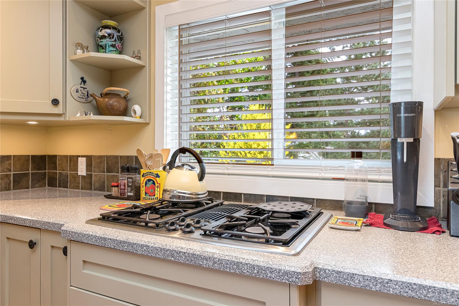 OPEN HOUSE SUNDAY 1-3! Discover this bright, tastefully updated 4-bed, 3-bath home in coveted Cordova Bay. The light-filled main level offers an open layout with spacious living room featuring a cozy fireplace and ocean glimpses, dining area, updated kitchen with gas stove and a sunroom—ideal for relaxing in the afternoon light. Upstairs are 3 bedrooms and 2 bathrooms including a primary with double closets and 3-pc ensuite. The lower level features a versatile bed/den with excellent storage, an updated 3-pc bath, laundry room and generous garage. Outside enjoy a sunny deck with hot tub and lots of room to entertain. The south-facing backyard has mature landscaping, irrigation, a greenhouse and garden shed. Updates include a heat pump, hot water tank, Kempas hardwood flooring, heated tile floors, solar-reflective sunroom glass, large skylight and so much more! Close to schools, Cordova Bay Beach, Saanich trails, Mattick’s Farm, Elk/Beaver Lakes and Broadmead Village. Don't miss out!