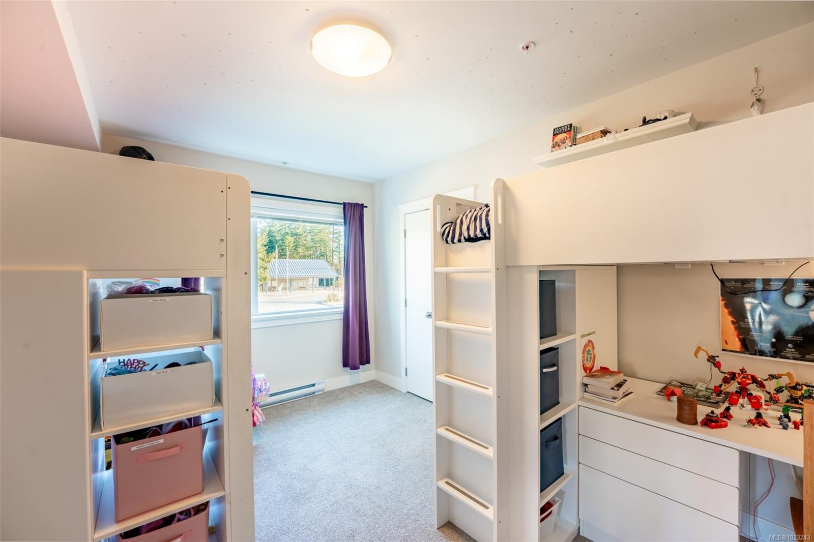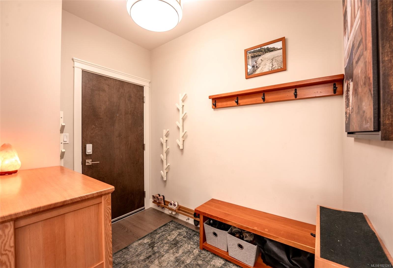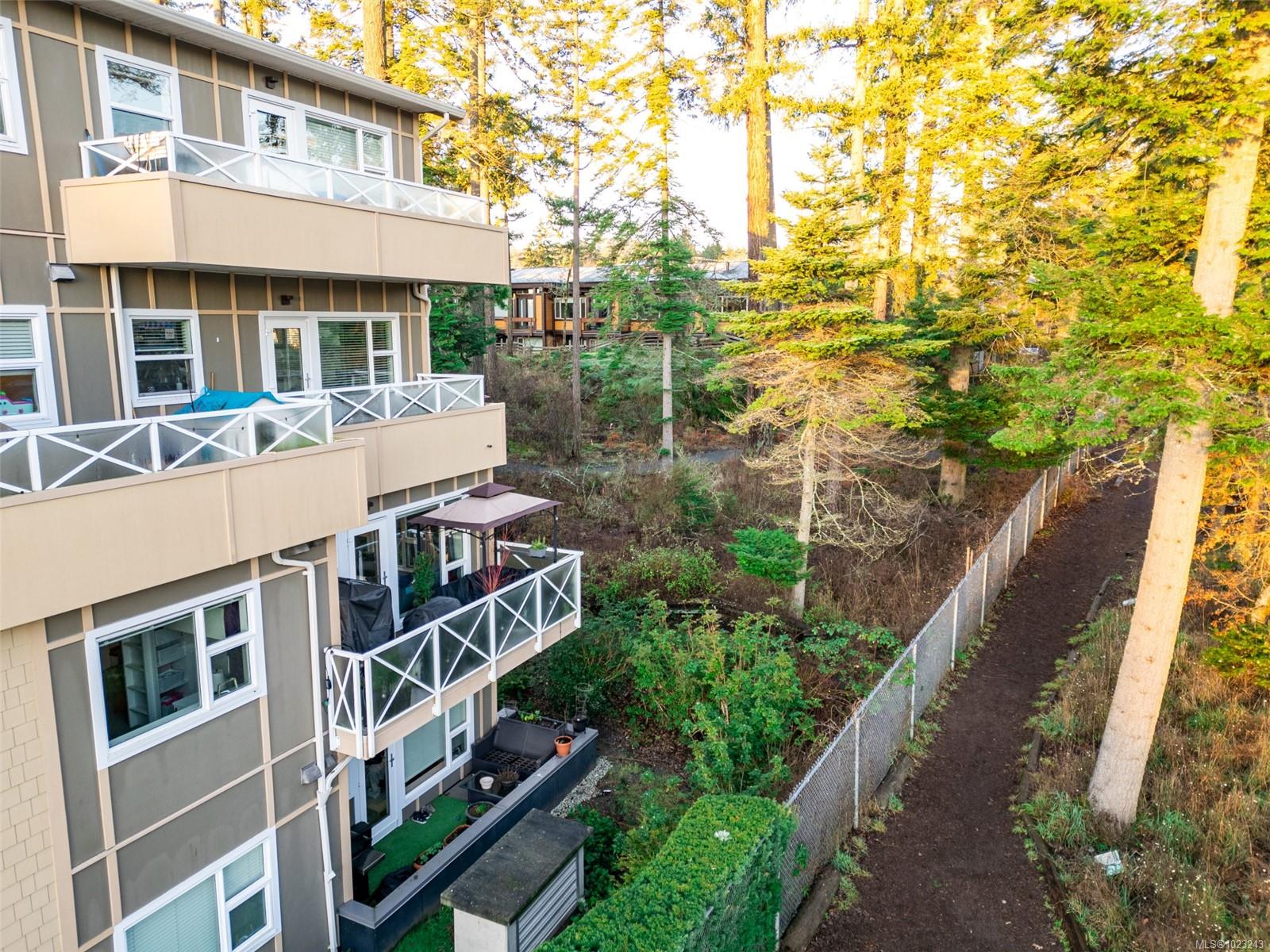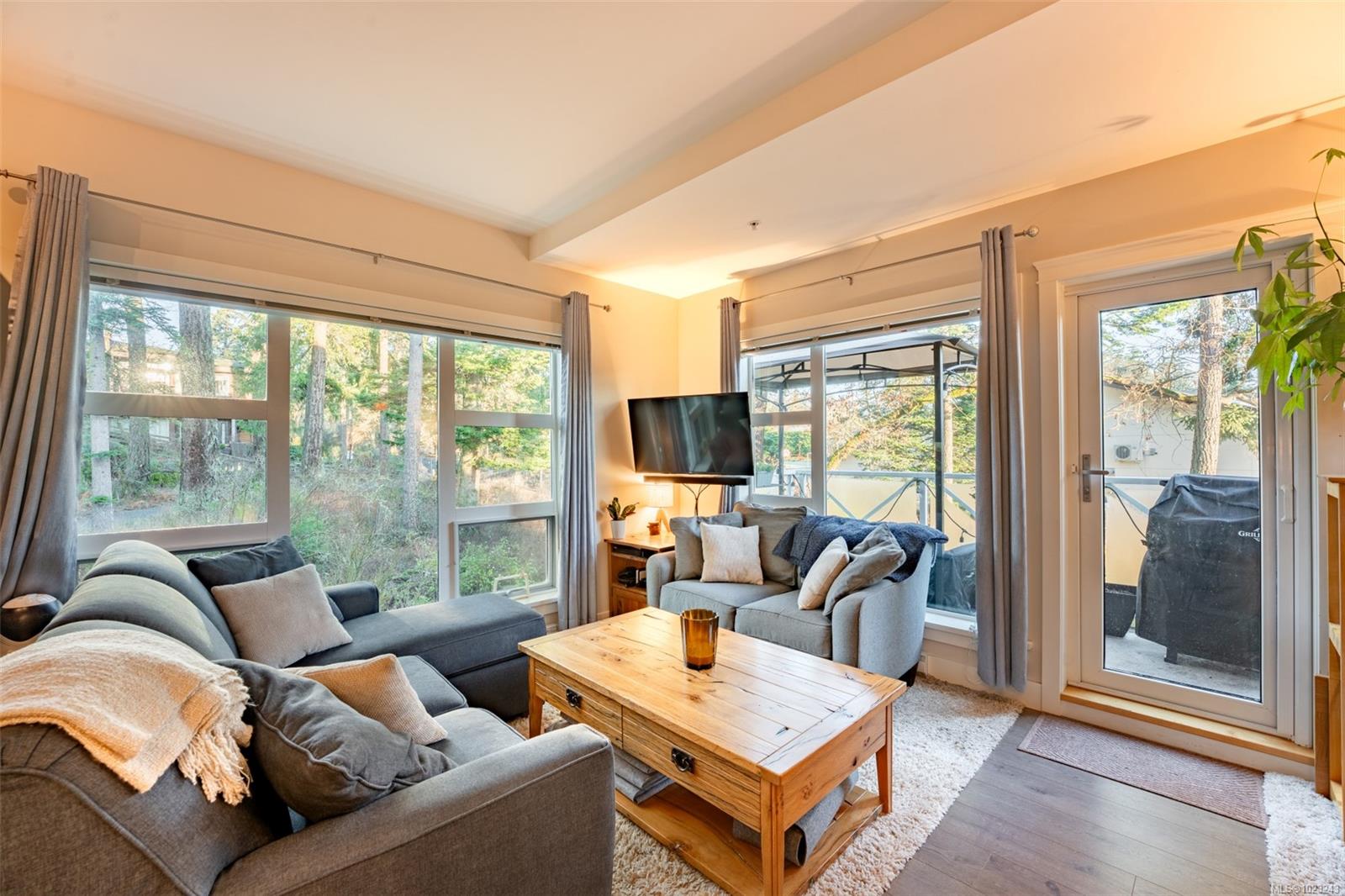 Quiet, park-side and surrounded by mature trees and municipal parkland, this peaceful, pet-friendly 2-bed, 2-bath corner suite offers a rare blend of nature, privacy, and modern comfort, like a private retreat with everyday convenience. Inside, the sleek kitchen features stone countertops, modern cabinetry, and abundant natural light. Over-height ceilings enhance the sense of space, and the layout places bedrooms on opposite sides of the suite, ideal for families, guests, or shared living. The exceptionally large second bedroom with generous closet space adds flexibility rarely found in condos of this size. Heated bathroom floors, a custom-fit AC unit, in-suite laundry, ample storage, and a large private balcony overlooking greenery add to the home’s livability. Extras include one oversized underground parking stall, storage locker, secure bike storage, and a well-managed strata. Located steps to Eagle Creek shopping, schools, hospital, transit, and trail access.