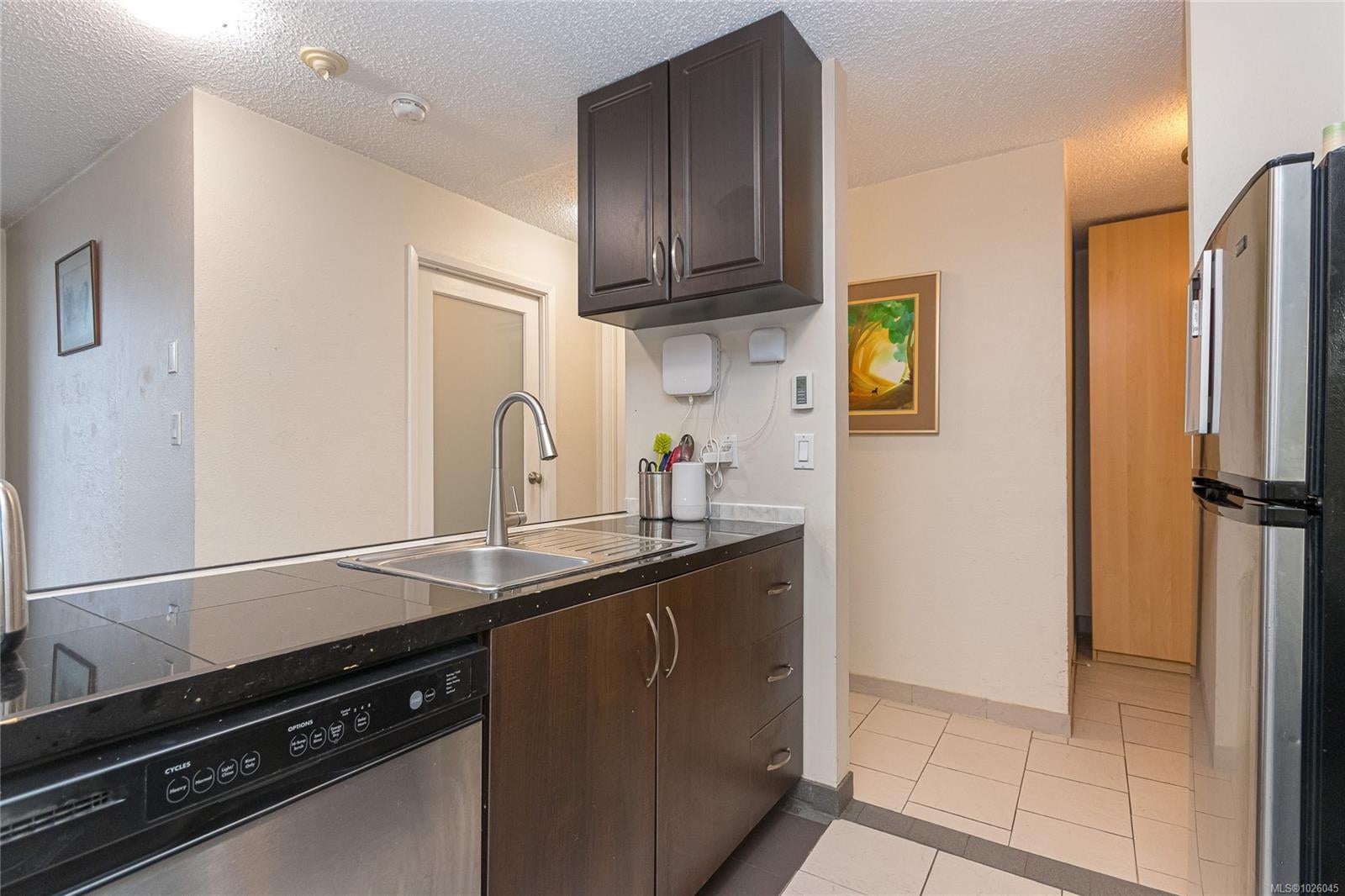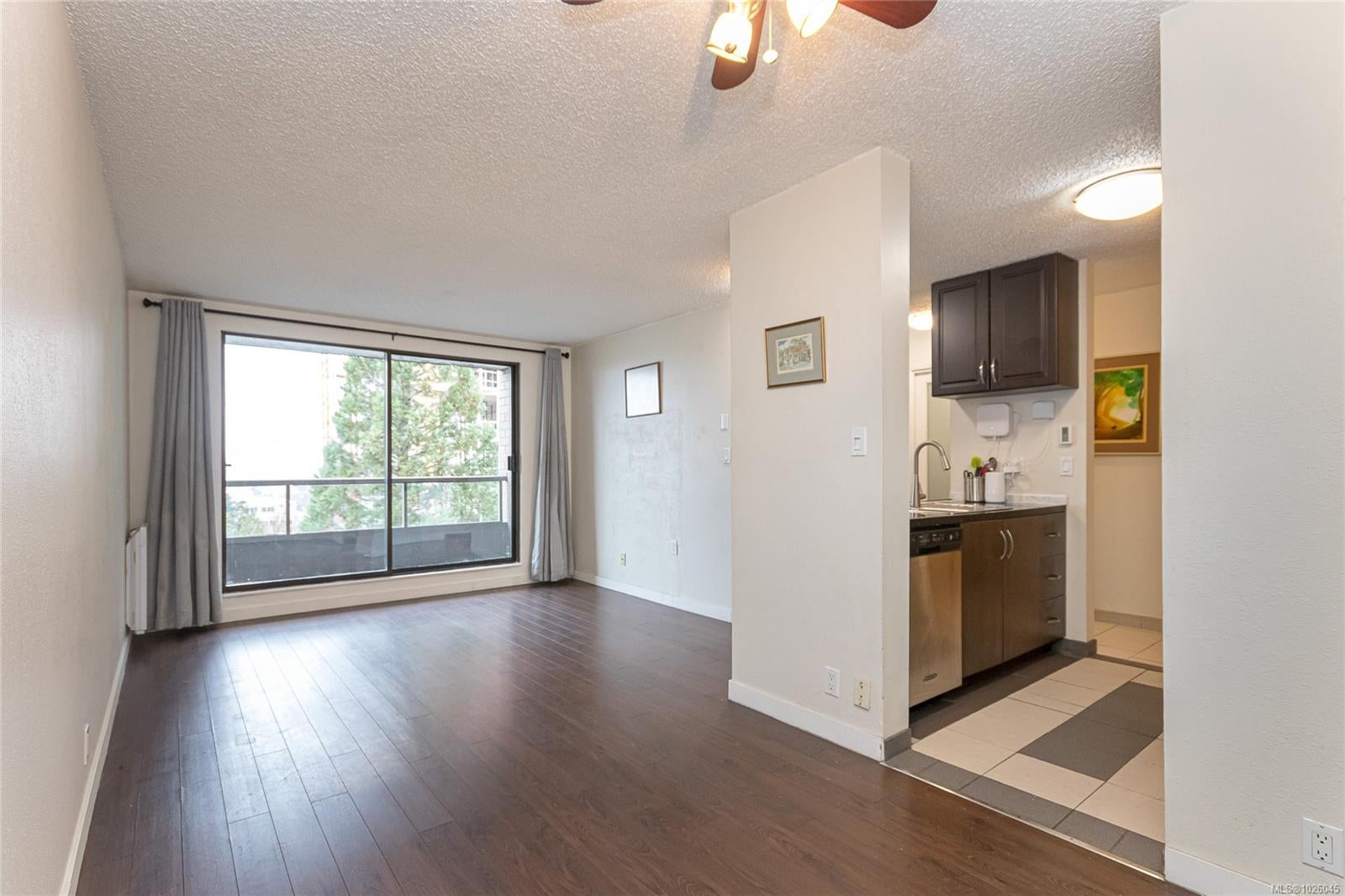 Located in the SANDPIPER. Come check out this smart looking brick building behind it's matching brick fence. It's a well run, professionally managed, STEEL AND CONCRETE building that features a terrific gym, steam room/sauna, large shared laundry room with many commercial machines, bike storage, plus a common room with a rooftop terrace all under the watchful eye of the full-time caretaker. RENTALS ARE PERMITTED and there are NO AGE RESTRICTIONS Your welcome to have 2 CATS or 1 DOG up to 10Kgs. The Strata does NOT all smoking in the building or on the strata property. Only electric BBQ's are allowed on the balconies. This 9th floor unit offers impressive city and distant mountain views from its northern exposure. You'll appreciate the open concept kitchen-living-dining layout and the private balcony accessible from the living room. The very generous sized bedroom can easily accommodate King size furniture. The unit features wood and heated tile floors. This is an ideal unit for a first-time buyer, downtown employee, students and or investors. The cost of the hot water is included in the strata fee. It's conveniently situated in the heart of Victoria's Downtown district known as North Park; you’re steps to public transit, bike routes and safety lanes, shops, cafes and restaurants, parks, the Market on Yates, London Drugs, No Frills and all amenities. This is indeed a rare opportunity to purchase at this price point and a quick possession is possible if needed... why pay rent when you could be building equity instead? Come see for yourself how you can easily customize this blank canvas to suit your decorating style. There’s currently a waitlist for a parking spot and storage unit.. the time is believed to be approximately 3 months. Don't delay call your favourite Realtor to arrange a showing. If you don't have a Realtor, we're happy to refer you to a highly qualified Buyers Agent.