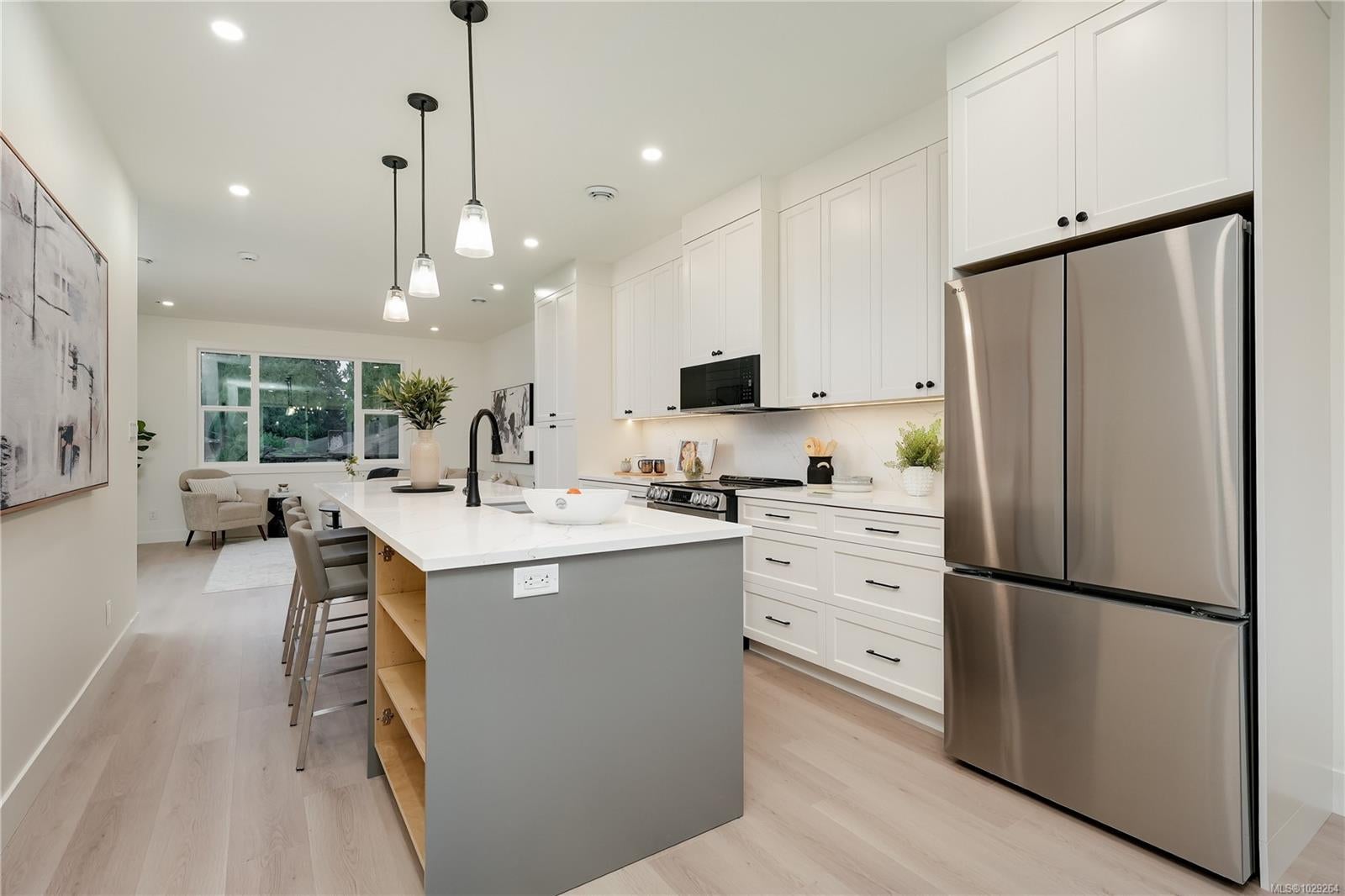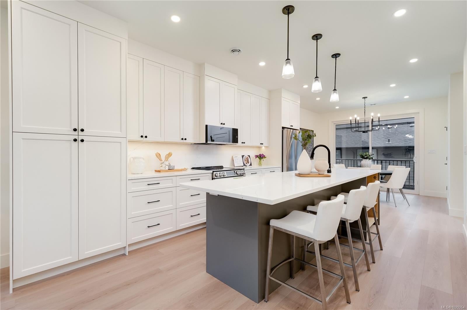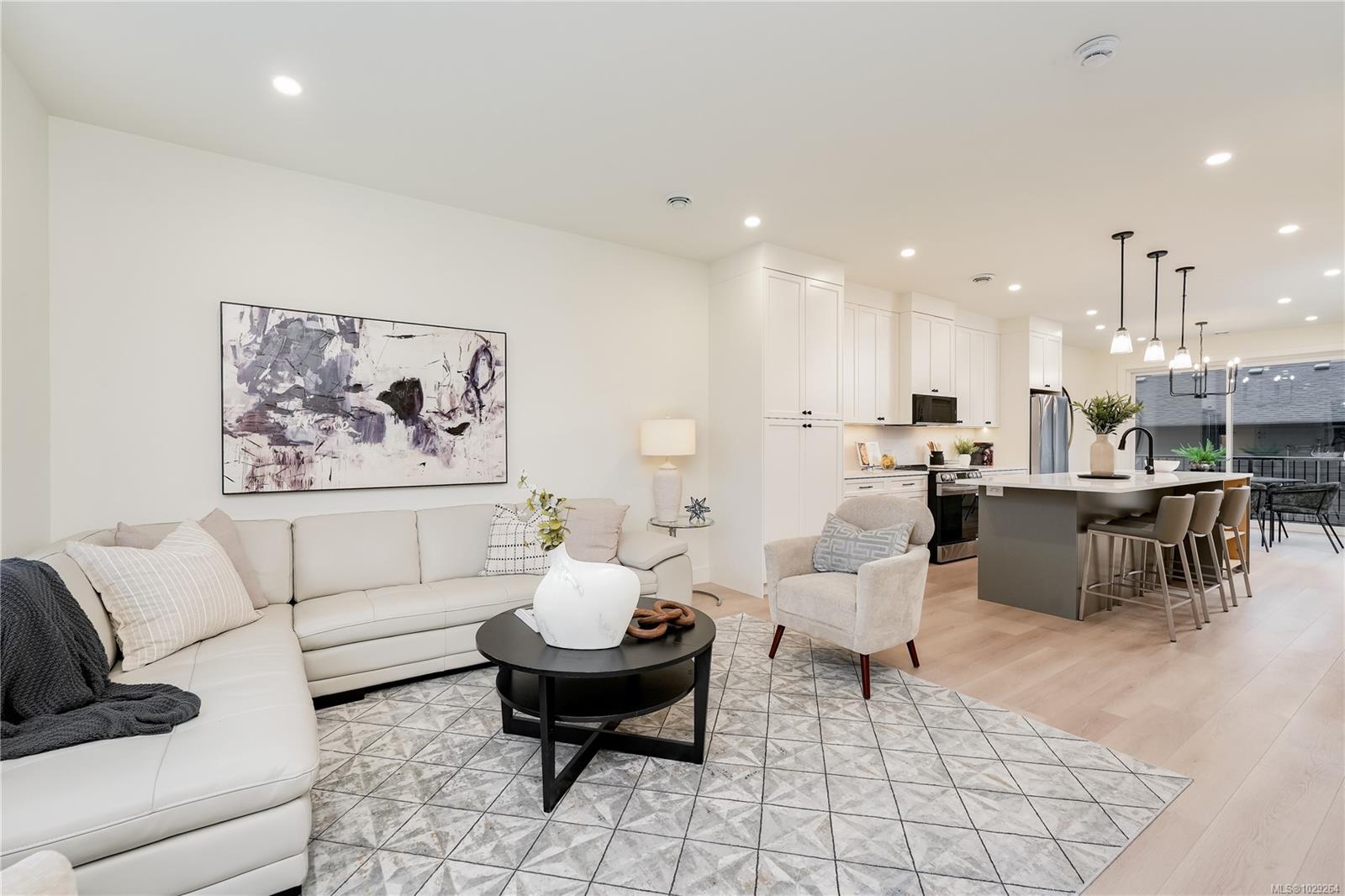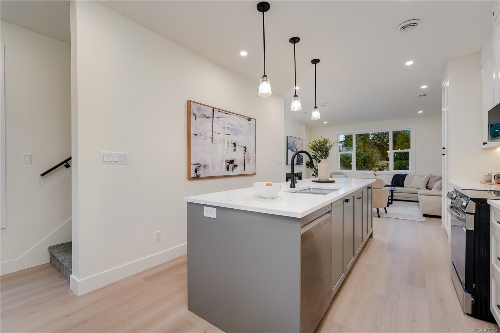 Glen Isle Townhomes @ 960 Jenkins - 8 Thoughtfully crafted homes that seamlessly blend everyday functionality with refined design. Situated steps from Belmont Market, they offer a peaceful retreat with all the conveniences of urban living at your doorstep. The main level boasts a bright, open-concept living space with oversized windows and electric fireplace. Upstairs, a well appointed 3 bed sleeping level, including laundry and generous primary with 2 closets & ensuite w/ heated floor. Comfort & quality abound w/ Premium Upgrades Included like 9 ft & Vaulted ceilings, Ducted Heat Pump system, ~43ft tandem garage w/ Epoxy coating, quartz counters & high end laminate floors. With modern design and walkable/bikeable location, this home is an exceptional opportunity to live in one of Langford’s most connected neighbourhoods. Photos may not be of the exact unit. Completion Est Mar 2026. Price+GST - Ask your Real Estate professional if GST & PPTT rebates may apply to you.