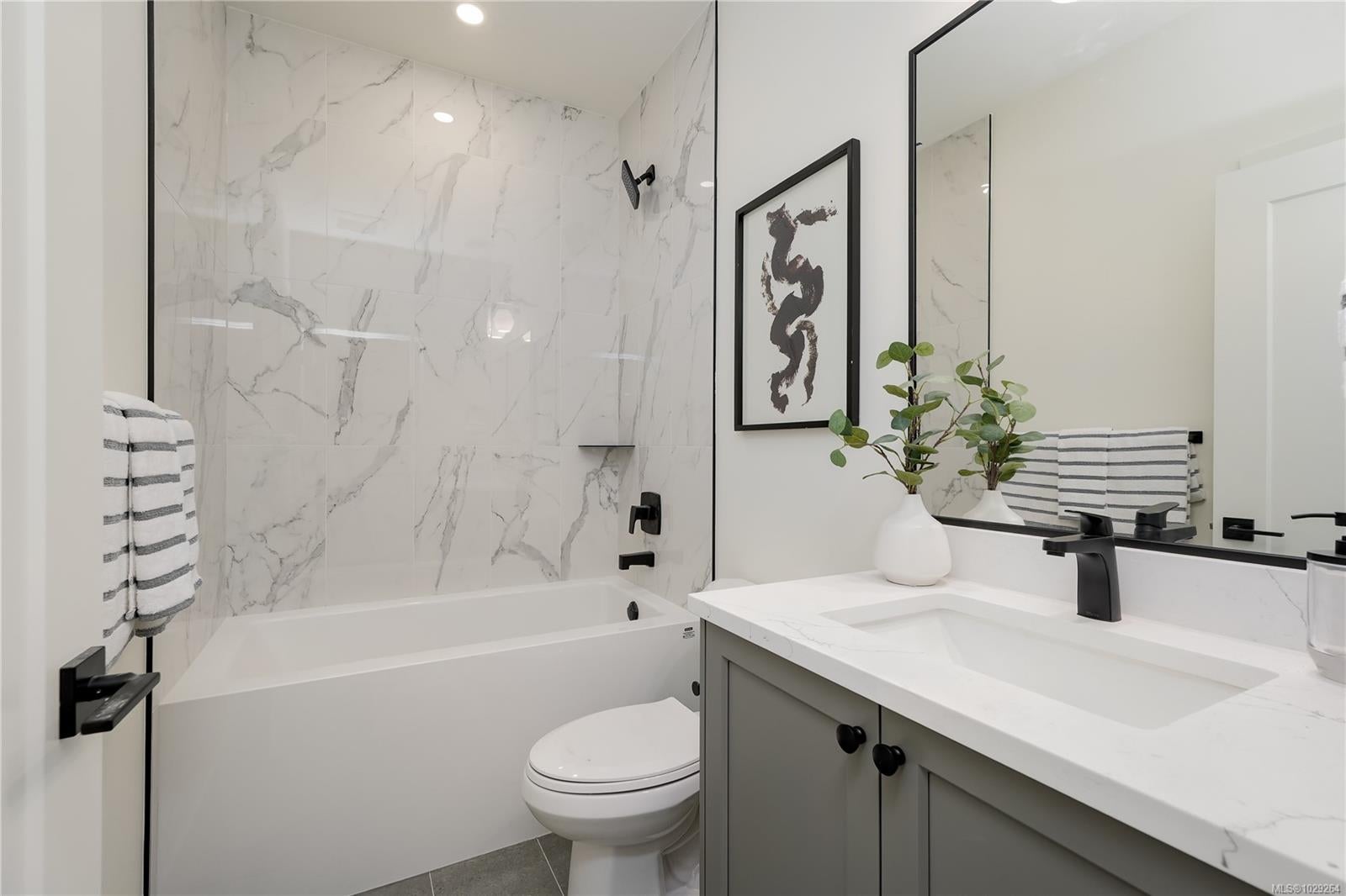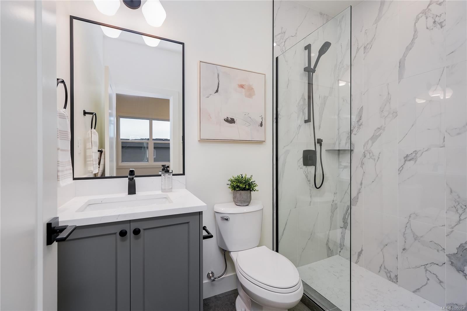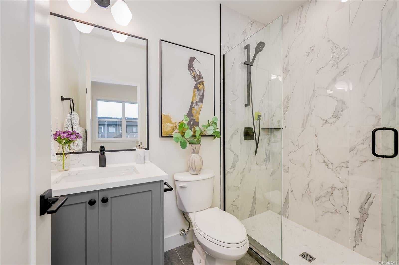 Glen Isle Townhomes @ 960 Jenkins - 8 Thoughtfully crafted homes that seamlessly blend everyday functionality with refined design. Situated steps from Belmont Market, they offer a peaceful retreat with all the conveniences of urban living at your doorstep. The main level boasts a bright, open-concept living space with oversized windows and electric fireplace. Upstairs, a well appointed 3 bed sleeping level, including laundry and generous primary with 2 closets & ensuite w/ heated floor. Comfort & quality abound w/ Premium Upgrades Included like 9 ft & Vaulted ceilings, Ducted Heat Pump system, ~43ft tandem garage w/ Epoxy coating, quartz counters & high end laminate floors. With modern design and walkable/bikeable location, this home is an exceptional opportunity to live in one of Langford’s most connected neighbourhoods. Photos may not be of the exact unit. Completion Est Mar 2026. Price+GST - Ask your Real Estate professional if GST & PPTT rebates may apply to you.
