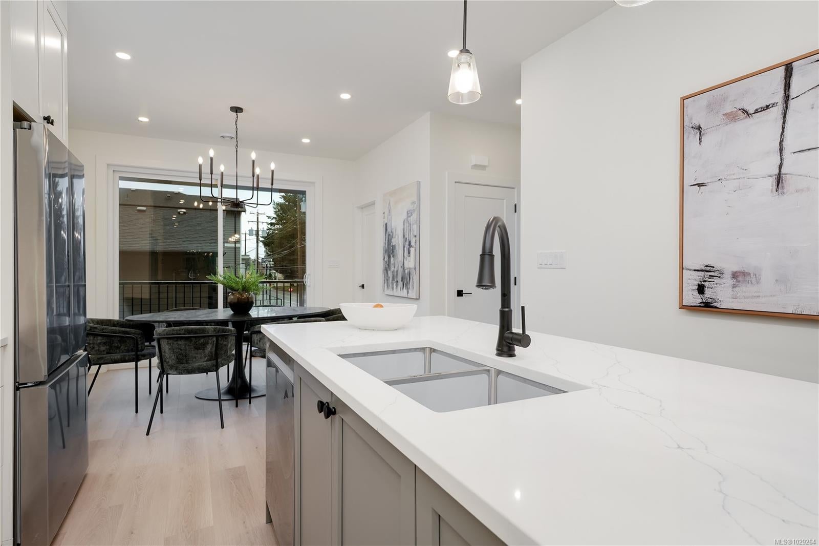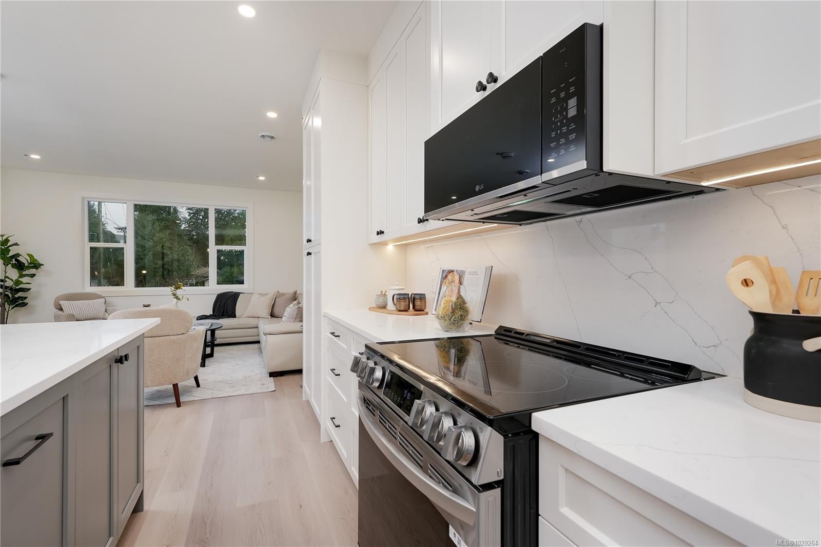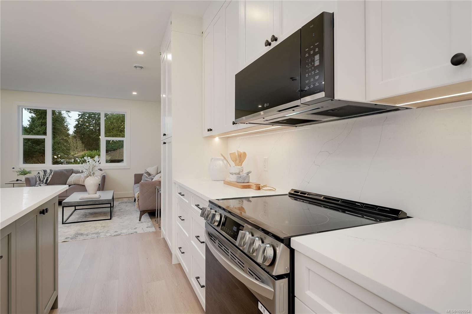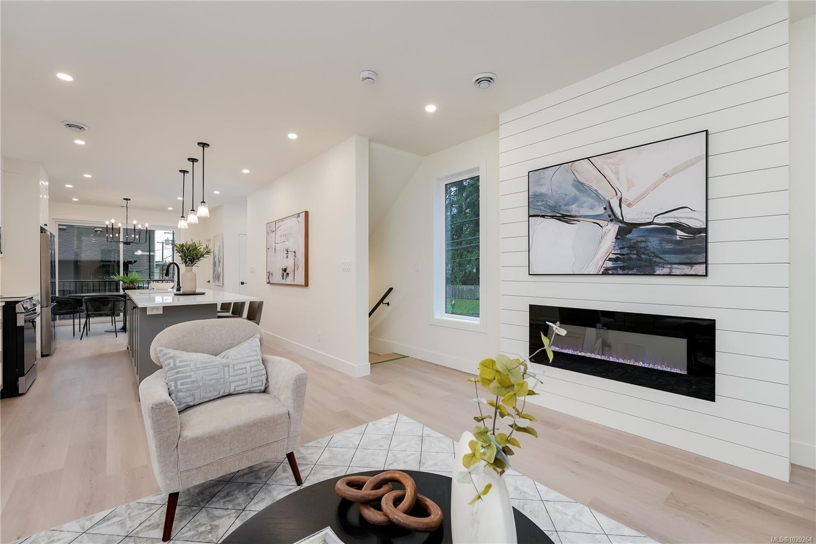 Glen Isle Townhomes @ 960 Jenkins - 8 Thoughtfully crafted homes that seamlessly blend everyday functionality with refined design. Situated steps from Belmont Market, they offer a peaceful retreat with all the conveniences of urban living at your doorstep. The main level boasts a bright, open-concept living space with oversized windows and electric fireplace. Upstairs, a well appointed 3 bed sleeping level, including laundry and generous primary with 2 closets & ensuite w/ heated floor. Comfort & quality abound w/ Premium Upgrades Included like 9 ft & Vaulted ceilings, Ducted Heat Pump system, ~43ft tandem garage w/ Epoxy coating, quartz counters & high end laminate floors. With modern design and walkable/bikeable location, this home is an exceptional opportunity to live in one of Langford’s most connected neighbourhoods. Photos may not be of the exact unit. Completion Est Mar 2026. Price+GST - Ask your Real Estate professional if GST & PPTT rebates may apply to you.